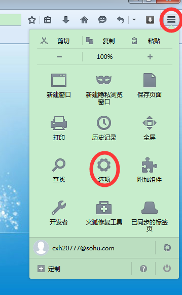 2.4.1 点击图示图表,弹出浏览器菜单中,选择"选项",