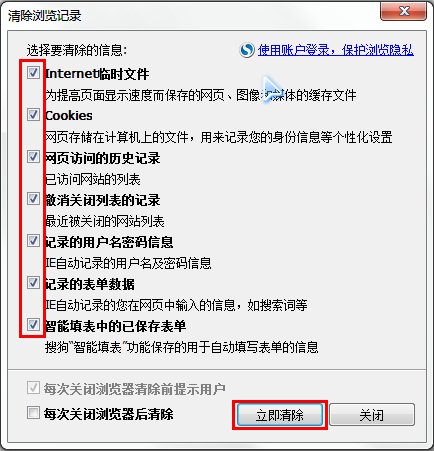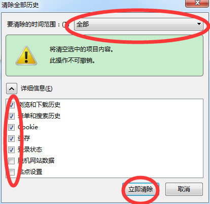 2.6.2 在"清除这段时间的数据"里选择"全部",选项都选上,单击“清除”按钮即可。