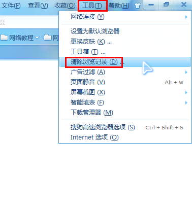 2.6.1 点击图示图表,弹出浏览器菜单中,选择"工具",下在选择"清除上网痕迹"